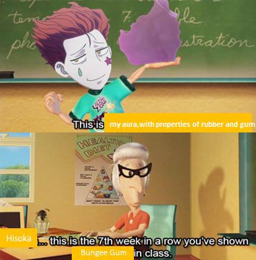 Every time Hisoka explains "bungee gum has the properties of both rubber and gum" - Hisoka Bungee Gum Quote